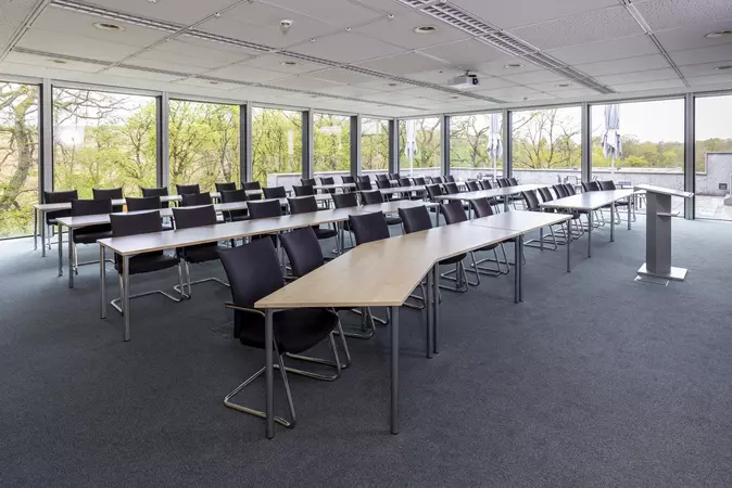 Willkommen im Seminarraum 1 in Haus Steinheim – unserem größten Konferenz- und Tagungsraum für bis zu 100 Teilnehmer. Der lichtdurchflutete Raum bietet eine professionelle und inspirierende Atmosphäre für Seminare, Workshops und Schulungen. Dank der flexiblen Bestuhlung, hochwertiger technischer Ausstattung und einer angenehmen Akustik ist er ideal für unterschiedliche Veranstaltungsformate.